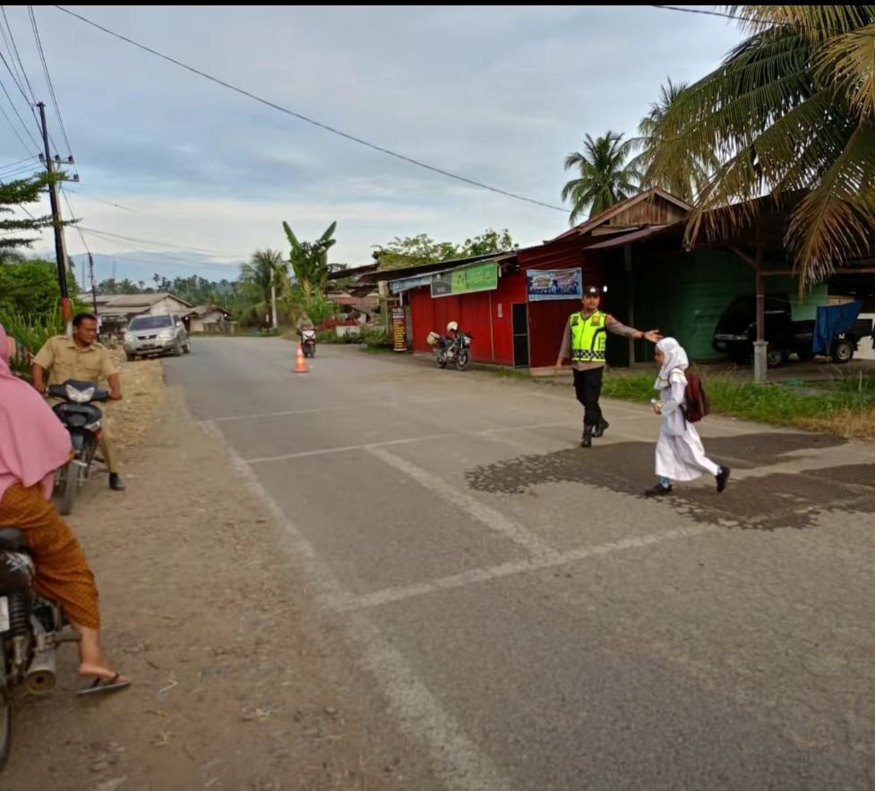 LHOKSEUMAWE – Keselamatan pelajar saat berangkat dan pulang sekolah menjadi perhatian utama bagi Polsek Simpang Kramat. Setiap pagi, personil kepolisian terlihat sigap berjaga di depan pintu gerbang Sekolah MIN 25 Aceh Utara. Kehadiran mereka tidak hanya memberikan rasa aman bagi para siswa, tetapi juga membantu mengatur lalu lintas yang kerap padat di sekitar area sekolah.