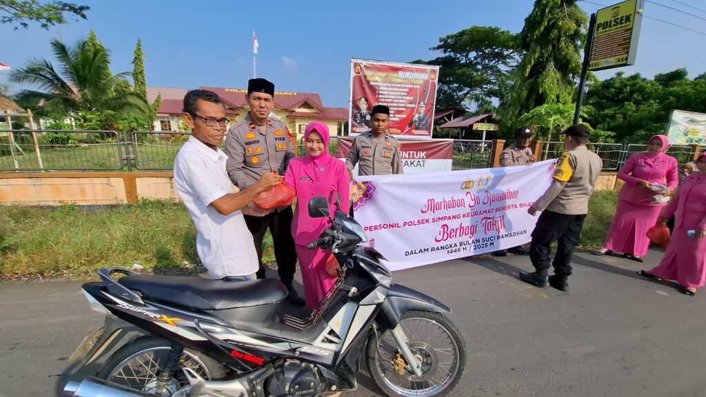 ACEH UTARA – Dalam semangat berbagi di bulan suci Ramadan 1446 H, personel Polsek Simpang Keuramat bersama Bhayangkari Ranting Simpang Keuramat membagikan takjil berbuka puasa kepada masyarakat sekitar dan pengguna jalan yang melintas di depan Mapolsek, Jumat (21/3/2025) sore.