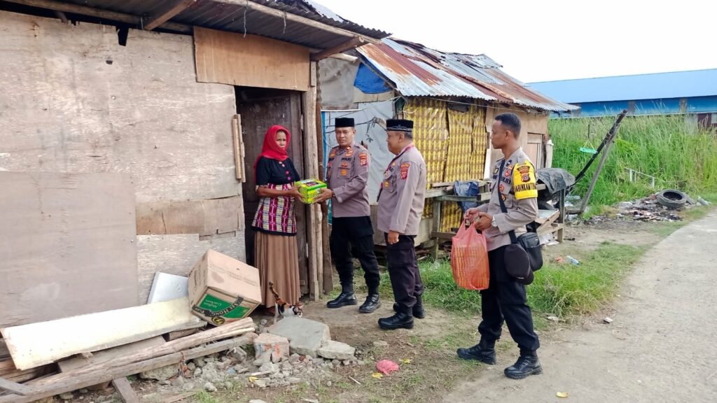 LHOKSEUMAWE – Personel Polsek Banda Sakti membagikan puluhan nasi kotak kepada warga kurang mampu jelang waktu berbuka puasa di wilayah Kecamatan Banda Sakti, Kota Lhokseumawe, Sabtu (1/4/2023).