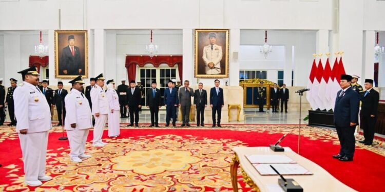 Presiden Prabowo Subianto resmi melantik Gubernur dan Wakil Gubernur (Wagub) Papua Pegunungan dan Kepulauan Bangka Belitung, di Istana Negara, Jakarta, Kamis (17/04/2025). Dalam keterangannya usai pelantikan, Gubernur Papua Pegunungan, John Tabo menyampaikan penghargaan tinggi kepada Presiden Prabowo yang telah melantik dirinya bersama kepala daerah yang lain di Istana hari ini.