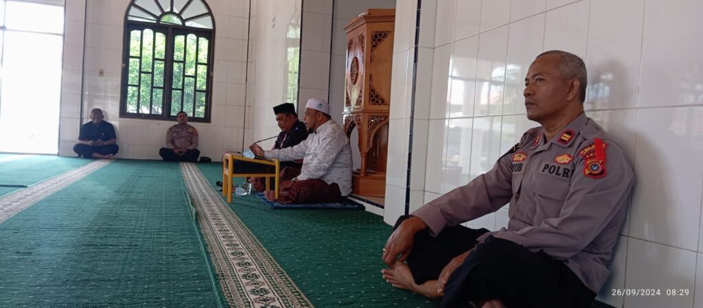 LHOKSEUMAWE- Seluruh Personel Polres Lhokseumawe Polda Aceh, mengikuti kegiatan Pembinaan Rohani dan Mental (Binrohtal), Kegiatan ini dilaksanakan secara rutin setiap seminggu sekali pada hari Kamis pagi pukul 08.20 WIB s.d.pukul 09.00 wib betempat di Mesjid Babul taqwa Polres Lhokseumawe. Kamis 27/09/2024. pagi.