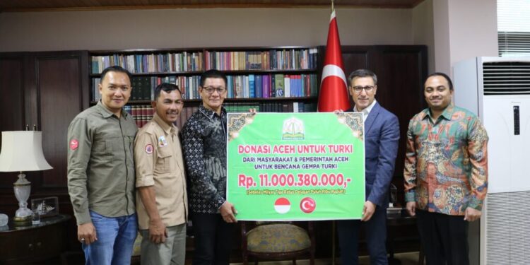 JAKARTA – Pemerintah dan masyarakat Aceh menyerahkan bantuan Rp11 miliar lebih kepada korban gempa yang melanda Turki pada Februari 2023 lalu. Donasi tersebut diterima langsung Duta Besar Republik Turki untuk Indonesia Prof. Dr. Talip Küçükcan di kantor Kedutaan Turki di Jakarta, Kamis (24/8/2023).