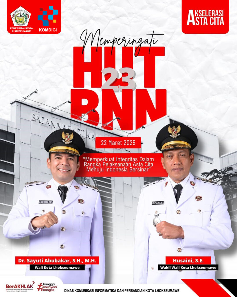 Pemerintah Kota Lhokseumawe : Dirgahayu Badan Narkotika Nasional RI yang ke-23!