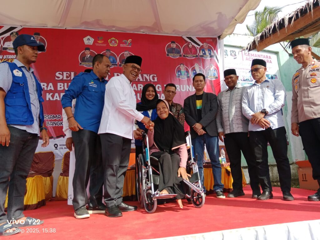 Acara puncak BBKT Aceh Utara 2025 dimeriahkan dengan rangkaian kegiatan sosial dan pemberdayaan yang menyentuh langsung kebutuhan masyarakat, di antaranya pemberian santunan paket nutrisi untuk 200 anak yatim dan terlantar.