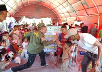 Kapolres Lhokseumawe Gelar Trauma Healing dan Pengobatan Gratis bagi Pengungsi Banjir di Riseh Tunong