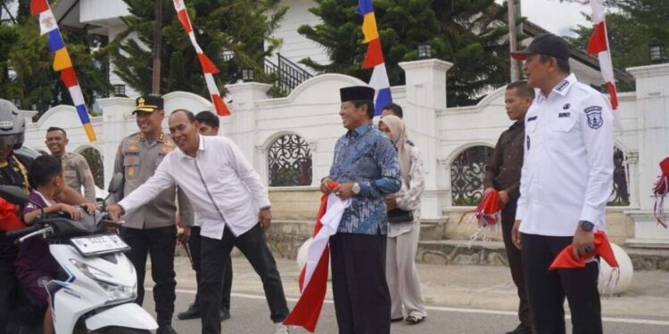 Blangkejeren – Menjelang HUT RI ke 80 tahun yang akan jatuh pada 17 Agustus mendatang, Bupati Gayo Lues beserta unsur Forkopimda bagikan bendera merah putih kepada pengendara yang melewati jalan raya depan Pendopo Bupati Gayo Lues, Rabu (13/8/2025).