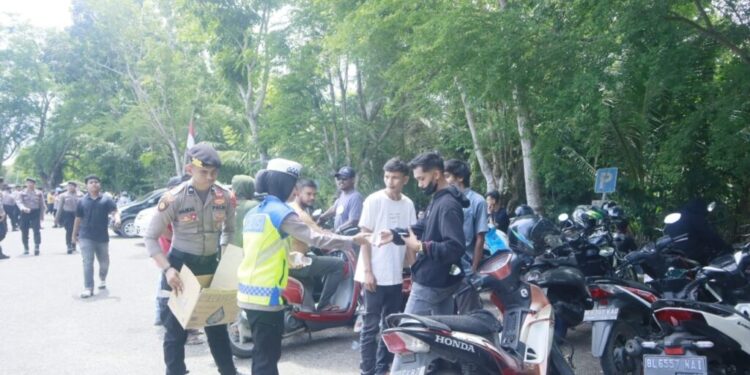 “Aksi simpatik dan humanis itu dilakukan secara spontan. Para personel yang melakukan pengamanan aksi unjuk rasa membagikan bekal logistik air minum yang dibawa dari Mapolres untuk masyarakat pengunjuk rasa”ungkap Salman