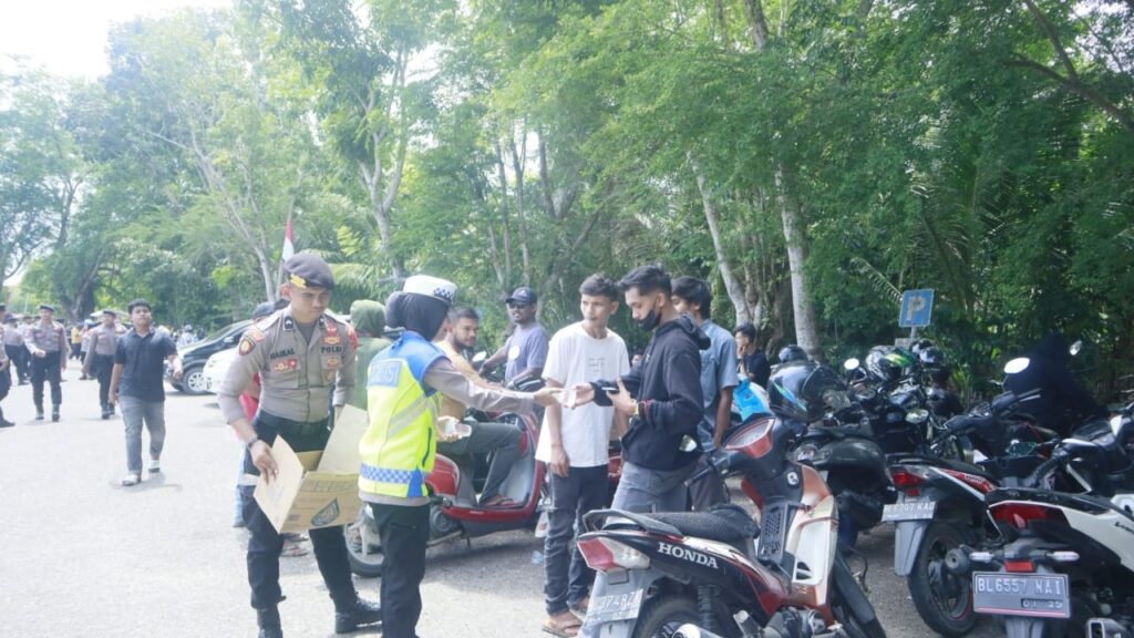 “Aksi simpatik dan humanis itu dilakukan secara spontan. Para personel yang melakukan pengamanan aksi unjuk rasa membagikan bekal logistik air minum yang dibawa dari Mapolres untuk masyarakat pengunjuk rasa”ungkap Salman