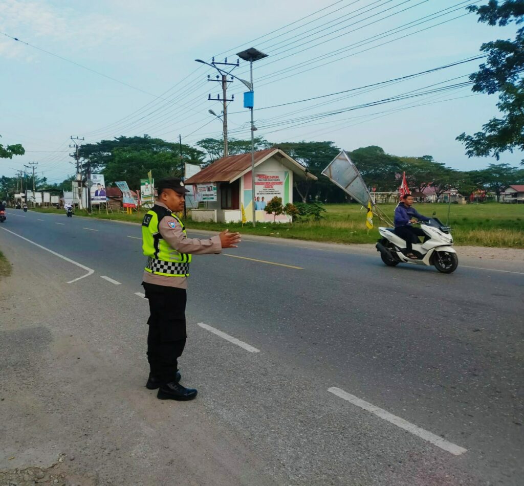 Lhokseumawe, 2 Desember 2024 – Dalam rangka mengantisipasi kemacetan dan memastikan kelancaran arus lalu lintas, Polsek Blang Mangat melaksanakan giat Strong Point pada hari Senin, 2 Desember 2024, mulai pukul 07.00 WIB hingga 07.45 WIB. Kegiatan ini berlangsung di Jalan Raya Medan-Banda Aceh, tepatnya di Desa Ulee Blang Mane, Kecamatan Blang Mangat, Kota Lhokseumawe, yang merupakan akses utama menuju SMP setempat.