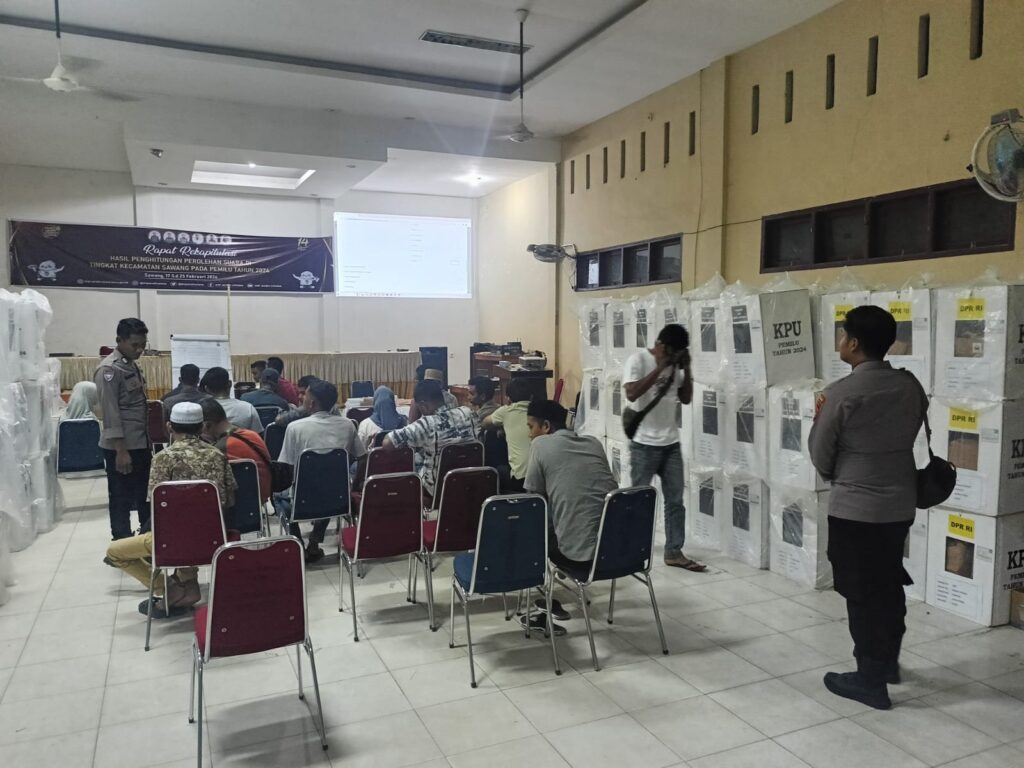 Seluruh, sebut Kapolsek, dengan pengamanan ketat oleh petugas, seluruh desa sudah dilakukan pleno/rekapitulasi suara hingga total 120 TPS.