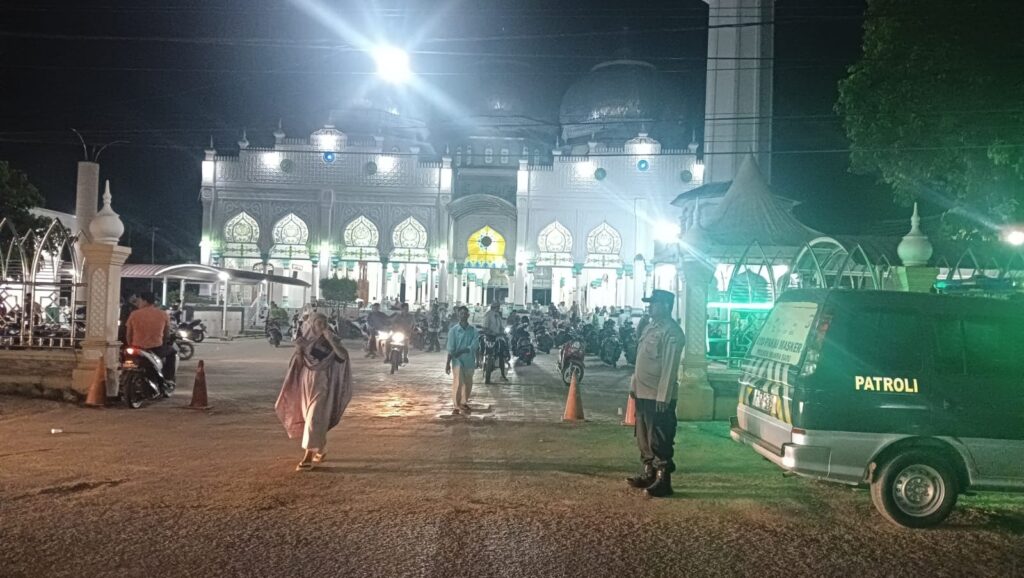 Kapolres Lhokseumawe, AKBP Henki Ismanto, SIK melalui Kapolsek Muara Satu, Iptu Syahrizal mengatakan, personel berpatroli di lingkungan dan seputaran masjid selama pelaksanaan ibadah shalat tarawih.