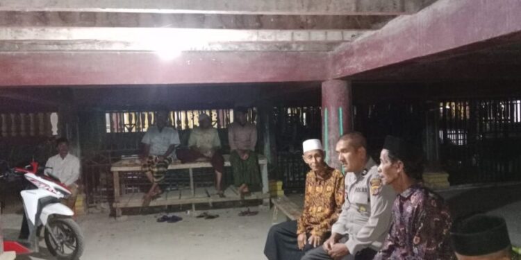 LHOKSEUMAWE – Personel Polsek Nisam, Polres Lhokseumawe melakukan pengamanan shalat Isya dan tarawih di masjid dan meunasah di wilayah tersebut, Kamis (30/3/2023) malam.