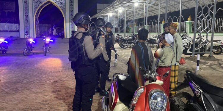 LHOKSEUMAWE – Tim Unit Reaksi Cepat (URC) Sat Samapta Polres Lhokseumawe melaksanakan pengamanan shalat tarawih di sejumlah masjid di wilayah hukum Polres Lhokseumawe, Selasa (4/4/2023) malam, dalam kegiatan ini personel menyambangi remaja.