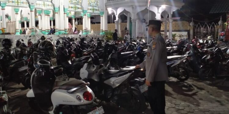 Aceh Utara – Dalam rangka memberikan rasa aman kepada masyarakat selama bulan suci Ramadan, personel dari Polsek Syamtalira Bayu melaksanakan pengamanan pelaksanaan salat berjamaah Isya dan Tarawih di Masjid Syuhada Mideun, Kecamatan Syamtalira Bayu, Kabupaten Aceh Utara, Rabu (11/3/2026) malam.