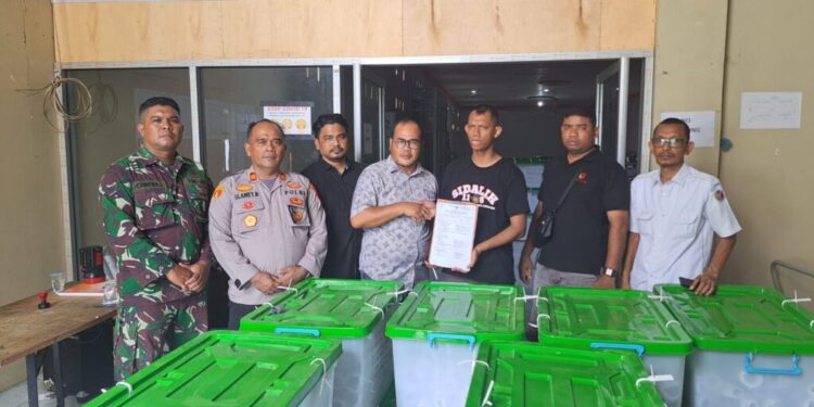 Kapolres Lhokseumawe AKBP Henki Ismanto, S.I.K melalui Kapolsek Sawang Iptu Slamet Riski menyebutkan, Dalam kegiatan yang dilaksanakan pada pukul 12.45 WIB itu, kotak suara sebanyak 600 buah beserta container box dengan berbagai dokumen penting diawasi dengan ketat dan dikawal oleh tim pengamanan.