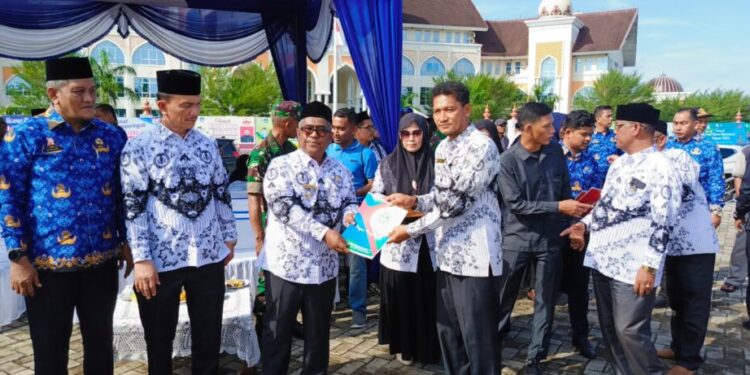 Aceh Utara — Pemberian penghargaan untuk puluhan guru dan kepala sekolah berprestasi mewarnai kegiatan memperingati Hari Guru Nasional (HGN) ke-79 jajaran Pemerintah Kabupaten Aceh Utara, Senin, 25 November 2024.