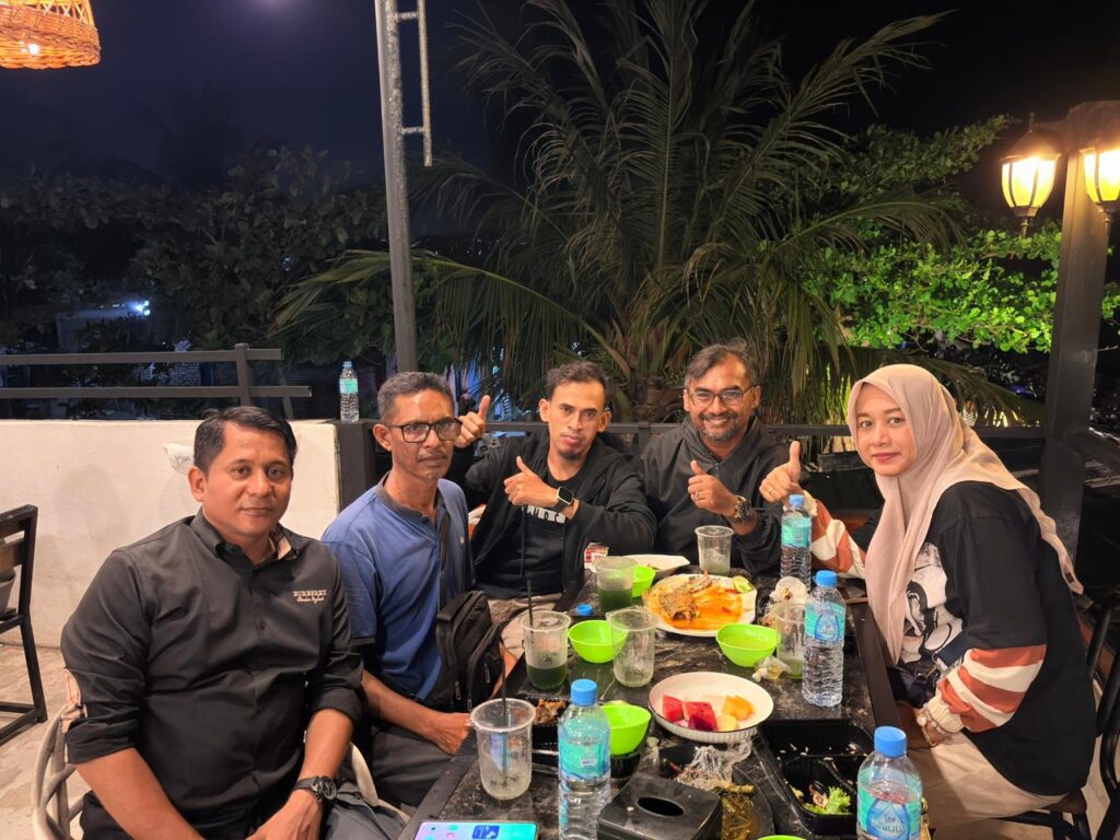 Suasana keakraban tampak menyelimuti meja panjang saat azan maghrib berkumandang. Sambil menikmati hidangan khas berbuka, para kru juga terlihat berdiskusi ringan mengenai perkembangan media digital di wilayah Aceh Utara dan Lhokseumawe.