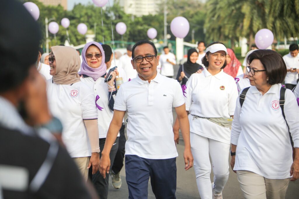 Jakarta, – Kementerian Koordinator Bidang Pembangunan Manusia dan Kebudayaan (Kemenko PMK) bersama Yayasan Kanker Indonesia menggelar Fun Walk di kawasan Monas, Jakarta, pada Rabu (5/2/2025).