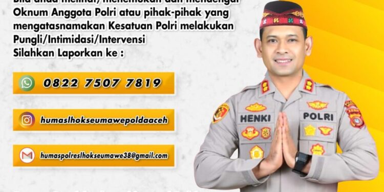 LHOKSEUMAWE – Polres Lhokseumawe mengajak masyarakat untuk melaporkan tindakan pungutan liar (pungli) dan intimidasi yang dilakukan oleh oknum Polri di wilayah hukum Polres Lhokseumawe.