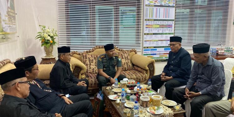 SIBER NUSANTARA, LHOKSEUMAWE — Dandim 0103/Aceh Utara, Letkol Inf Hendrasari Nurhono, S.I.P., M.I.P, laksanakan kegiatan Audiensi, dengan Tokoh majelis Adat Aceh (MAA) wilayah Kota Lhokseumawe, yang berlangsung ruang kerja Dandim, pada Rabu (12/07/2023).