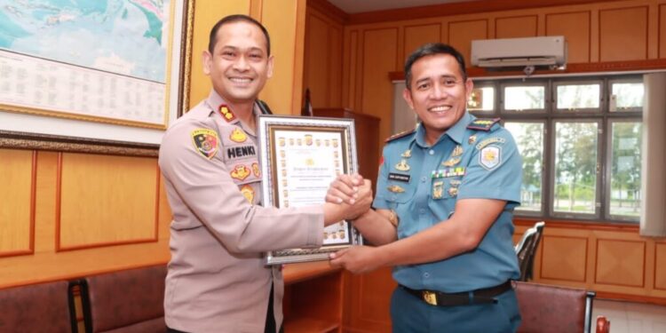 Lhokseumawe – Kapolres Lhokseumawe AKBP Henki Ismanto, SIK kunjungi markas Lanal Lhokseumawe, Gampong Pulo Rungkom, Kecamatan Dewantara, Aceh Utara, Rabu (22/02/2023) pagi.