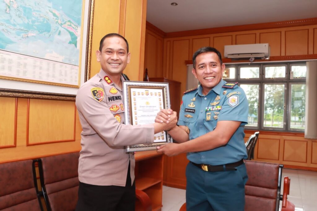 Lhokseumawe – Kapolres Lhokseumawe AKBP Henki Ismanto, SIK kunjungi markas Lanal Lhokseumawe, Gampong Pulo Rungkom, Kecamatan Dewantara, Aceh Utara, Rabu (22/02/2023) pagi.