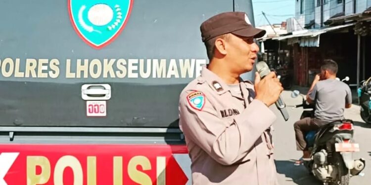 Kapolres Lhokseumawe, AKBP Henki Ismanto, SIK melalui Kasat Binmas, AKP Arifin Ahmad, S Sos mengatakan, personel menyampaikan pesan keamanan dan ketertiban masyarakat (Kamtibmas) dengan menggunakan mobil operasional yang dilengkapi dengan pengeras suara.