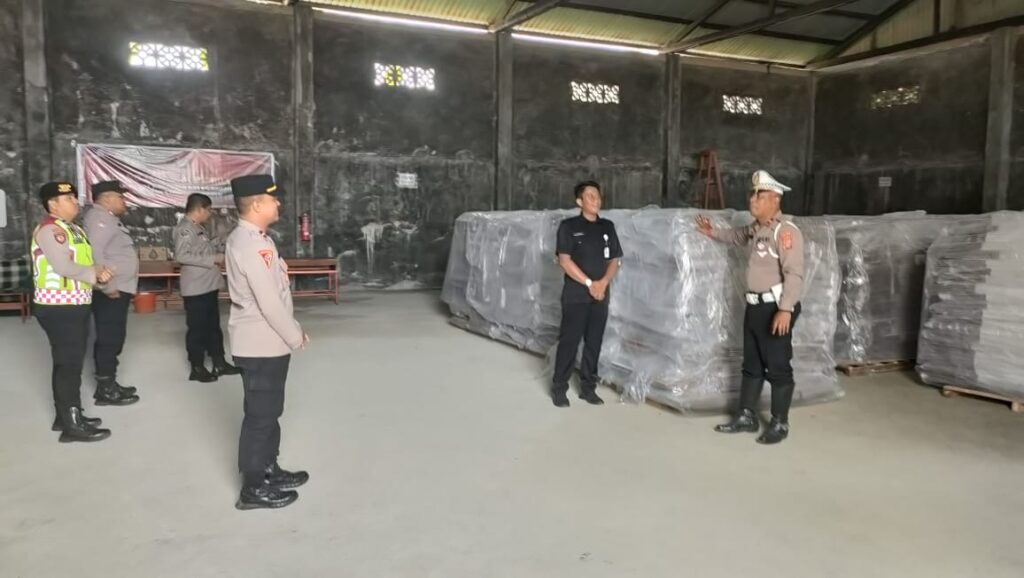 LHOKSEUMAWE – Personel gabungan Operasi Mantap Brata Seulawah 2023-2024 Polres Lhokseumawe memeriksa logistik pemilu di dalam gudang, Selasa (21/11/2023), kegiatan tersebut guna memastikan logistik pemilu tetap aman.