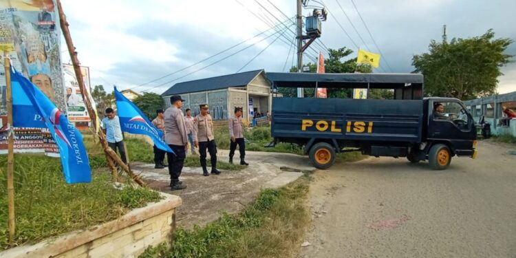 LHOKSEUMAWE – Personel gabungan Polres Lhokseumawe melakukan pengamanan kampanye tatap muka calon legislatif (caleg) dan kampanye pasangan capres di wilayah hukum Polres Lhokseumawe, Minggu (28/1/2024).
