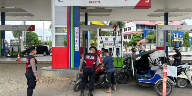 LHOKSEUMAWE – Personel Samapta Polres Lhokseumawe melaksanakan patroli dengan menyasar SPBU dan tempat diduga rawan gangguan Kamtibmas di wilayah hukum Polres Lhokseumawe, Rabu (19/7/2023).