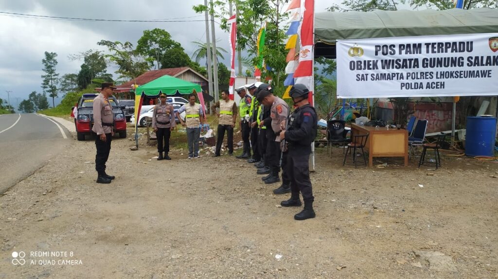 LHOKSEUMAWE – Personel Pam wisata Gunung Salak, Aceh Utara, wilayah hukum Polres Lhokseumawe melaksanakan apel dan patroli rutin di sepanjang jalur tersebut, Jumat (28/4/2023).