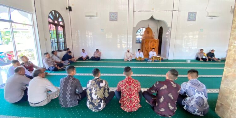 LHOKSEUMAWE – Puluhan personel Polres Lhokseumawe mengikuti bimbingan rohani dan mental (binrohtal) rutin, kegiatan tersebut berlangsung di Masjid Babuttaqwa Mapolres Lhokseumawe, Kamis (26/10/2023).