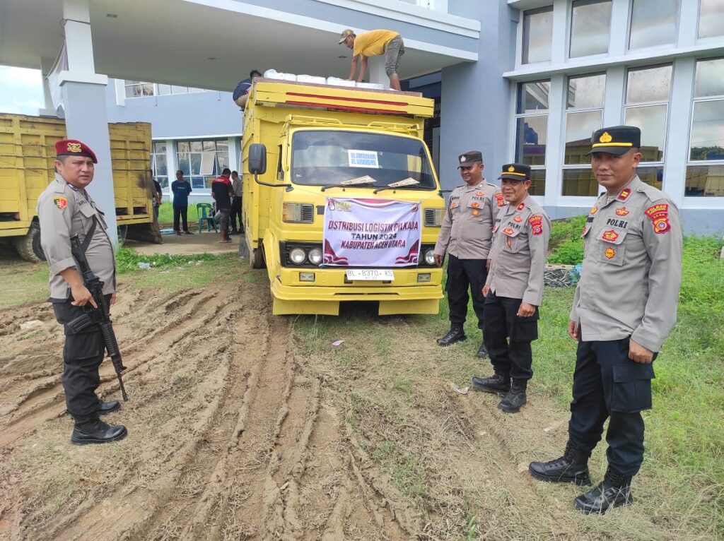 ACEH UTARA – Personel Polres Lhokseumawe hari ini melaksanakan pengawalan pendistribusian material logistik Pemilu dari Gudang Komisi Independen Pemilihan (KIP) Aceh Utara ke 12 kecamatan dalam wilayah hukum Polres Lhokseumawe, Senin (25/11/2024).