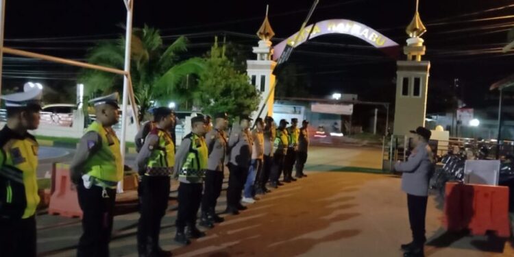 LHOKSEUMAWE – Personel Polres Lhokseumawe melakukan pengamanan di lokasi acara kampanye dialogis calon legislatif (caleg) DPRK Lhokseumawe dari Partai Nasional Demokrat (Nasdem) di Kecamatan Muara Satu, Kota Lhokseumawe, Selasa (2/1/2024) malam.