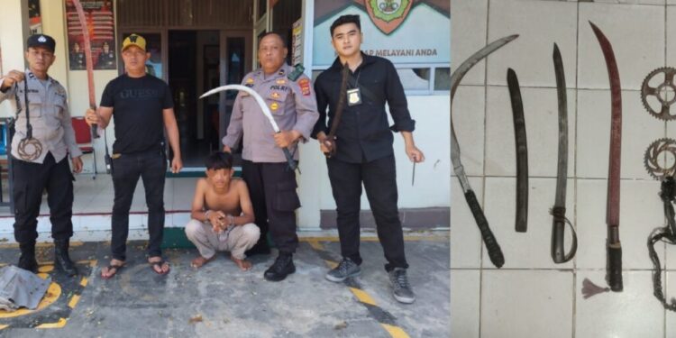 LHOKSEUMAWE – Personel Polsek Banda Sakti mengamankan salah satu anggota geng motor Segerombolan Pencari Syetan (GPS) di Desa Uteun Bayi, Kecamatan Banda Sakti, Kota Lhokseumawe, Sabtu (19/8/2023) sekira pukul 15.00 WIB.