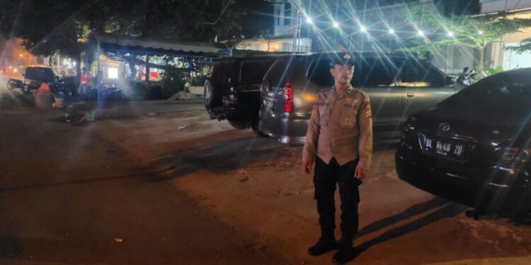 LHOKSEUMAWE – Personel Polsek Banda Sakti melaksanakan patroli dengan menyasar tempat parkir kendaraan bermotor di wilayah Kota Lhokseumawe, Rabu (24/5/2023) malam.
