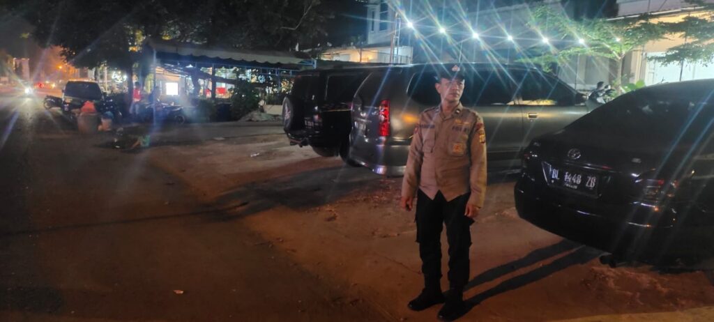 LHOKSEUMAWE – Personel Polsek Banda Sakti melaksanakan patroli dengan menyasar tempat parkir kendaraan bermotor di wilayah Kota Lhokseumawe, Rabu (24/5/2023) malam.