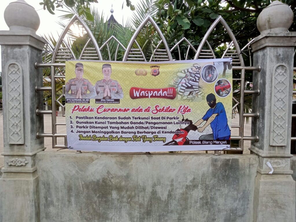 “Spanduk ini kita pasang di tempat ibadah dan tempat publik lainnya, sehingga mudah dibaca oleh masyarakat,” ujar Kapolres Lhokseumawe, AKBP Henki Ismanto, SIK melalui Kapolsek Blang Mangat, Iptu Saprudin, SH, MH.