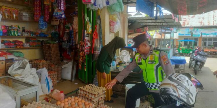 LHOKSEUMAWE – Personel Polsek Blang Mangat melakukan patroli rutin di pasar Keude Punteut, Kecamatan Blang Mangat, Kota Lhokseumawe, Jumat (15/12/2023).