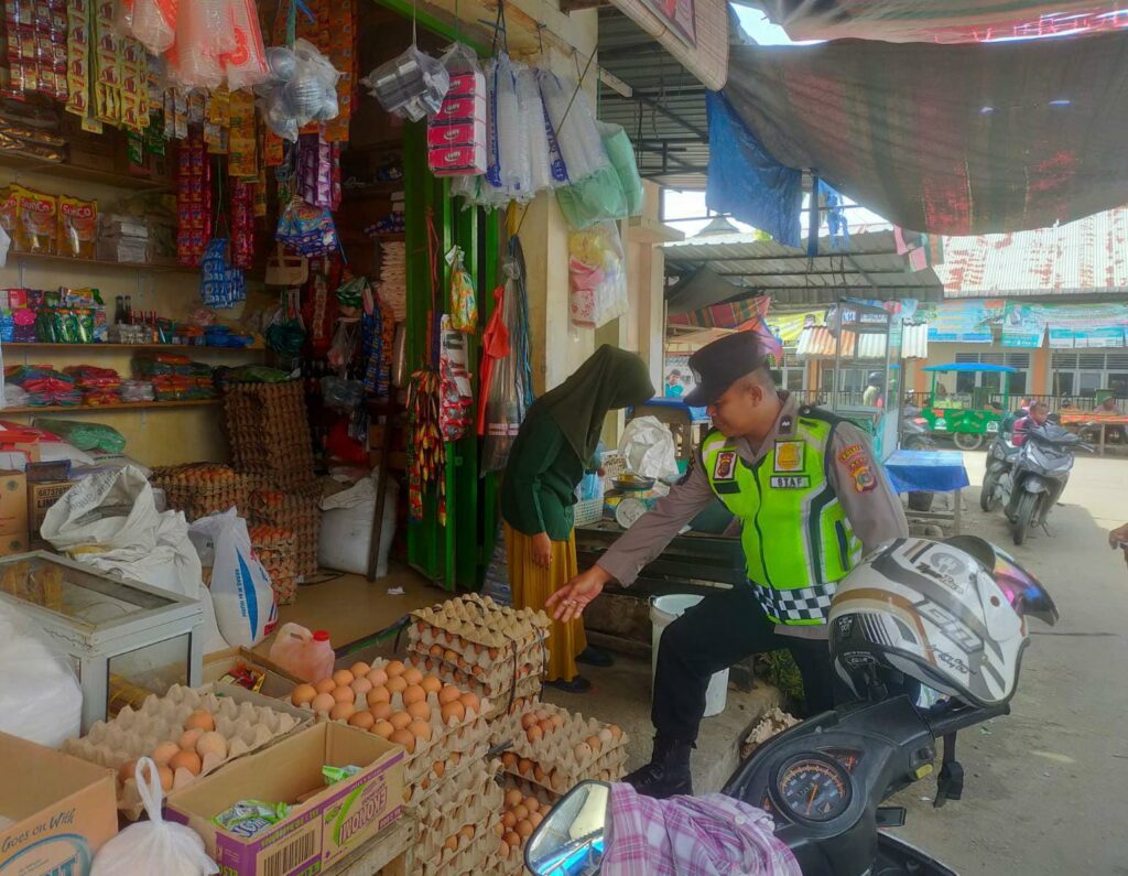 LHOKSEUMAWE – Personel Polsek Blang Mangat melakukan patroli rutin di pasar Keude Punteut, Kecamatan Blang Mangat, Kota Lhokseumawe, Jumat (15/12/2023).