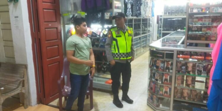 Personel Polsek Blang Mangat Patroli Dialogis Malam Hari di Pertokoan