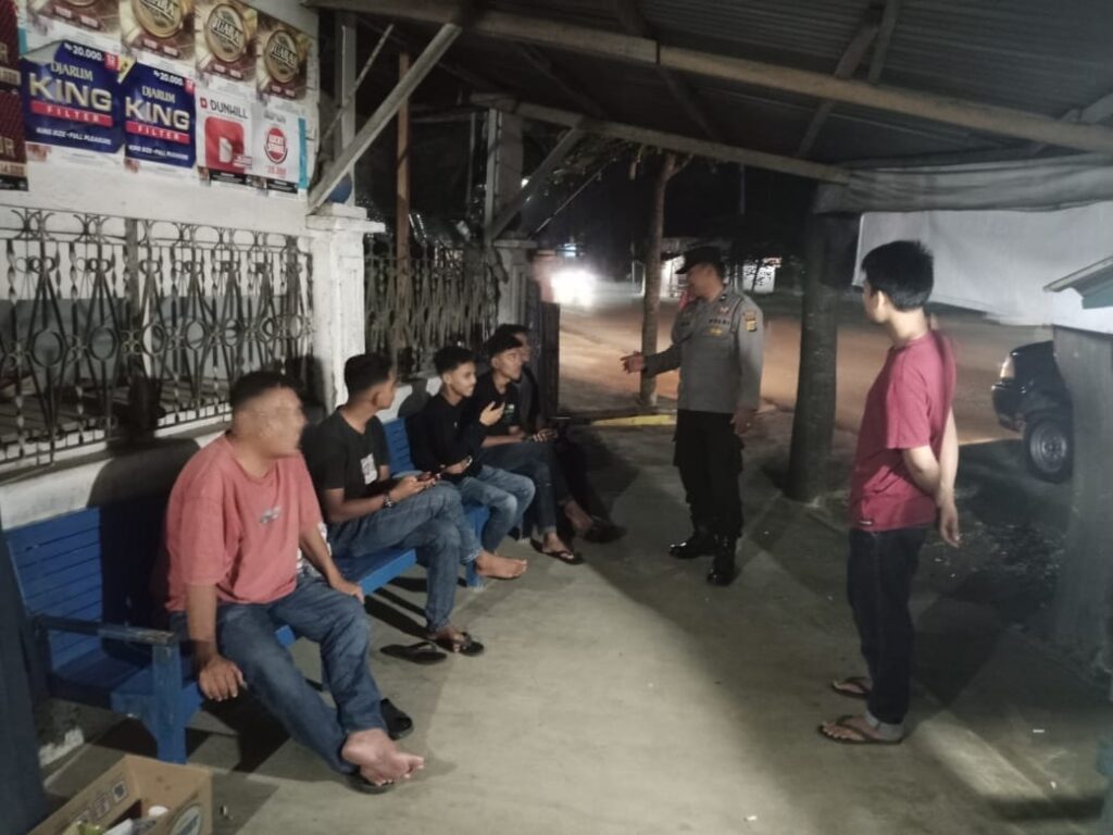 LHOKSEUMAWE- Personel Polsek Blang Mangat melaksanakan patroli rutin antisipasi gangguan Kamtibmas dan menyambagi warga di Desa Blang Teu dan Masjid Punteut, Kecamatan Blang Mangat, Kota Lhokseumawe, Minggu (9/7/2023) malam.