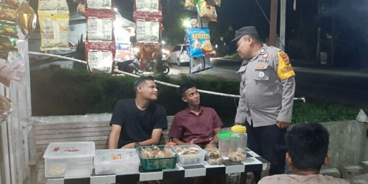 LHOKSEUMAWE – Personel Polsek Blang Mangat melaksanakan patroli dialogis dan menyambagi warga di sejumlah gampong (desa) di Kecamatan Blang Mangat, Kota Lhokseumawe, Selasa (30/5/2023) malam.