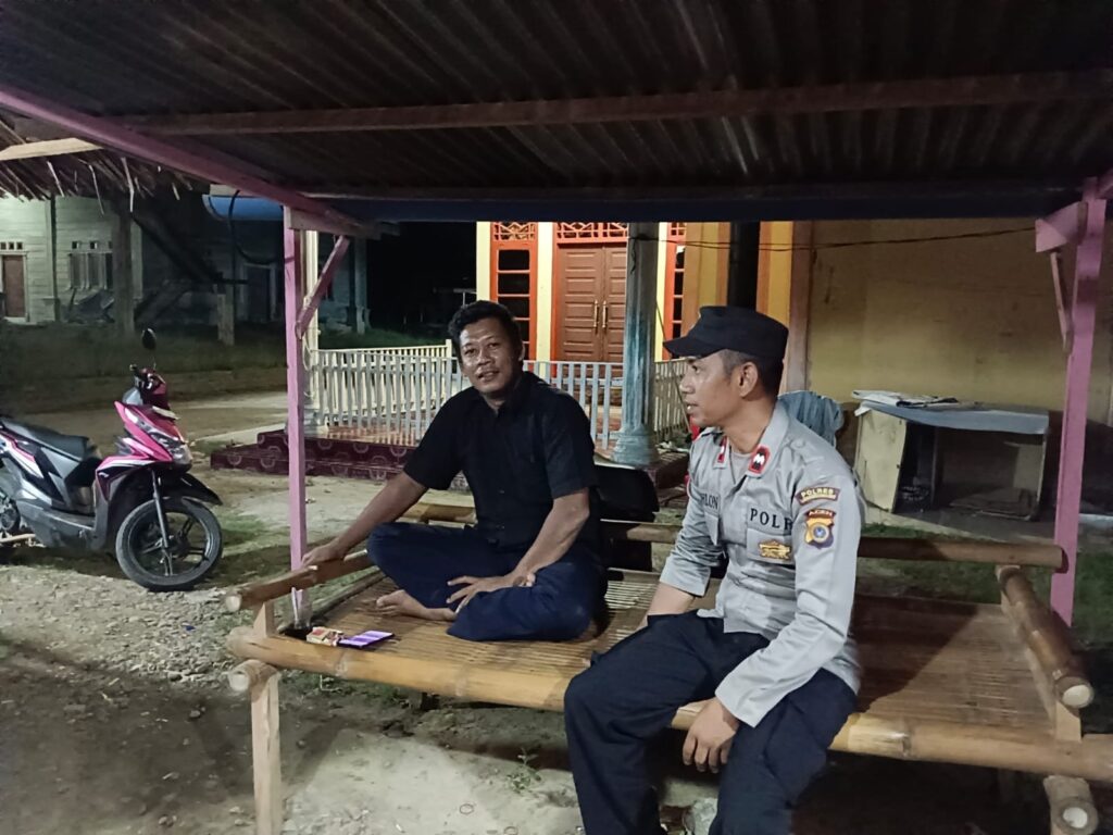 LHOKSEUMAWE- Personel Polsek Blang Mangat menyambangi warga Keude Punteut, Kecamatan Blang Mangat, Kota Lhokseumawe saat melaksanakan patroli rutin, Minggu (28/5/2033) malam.