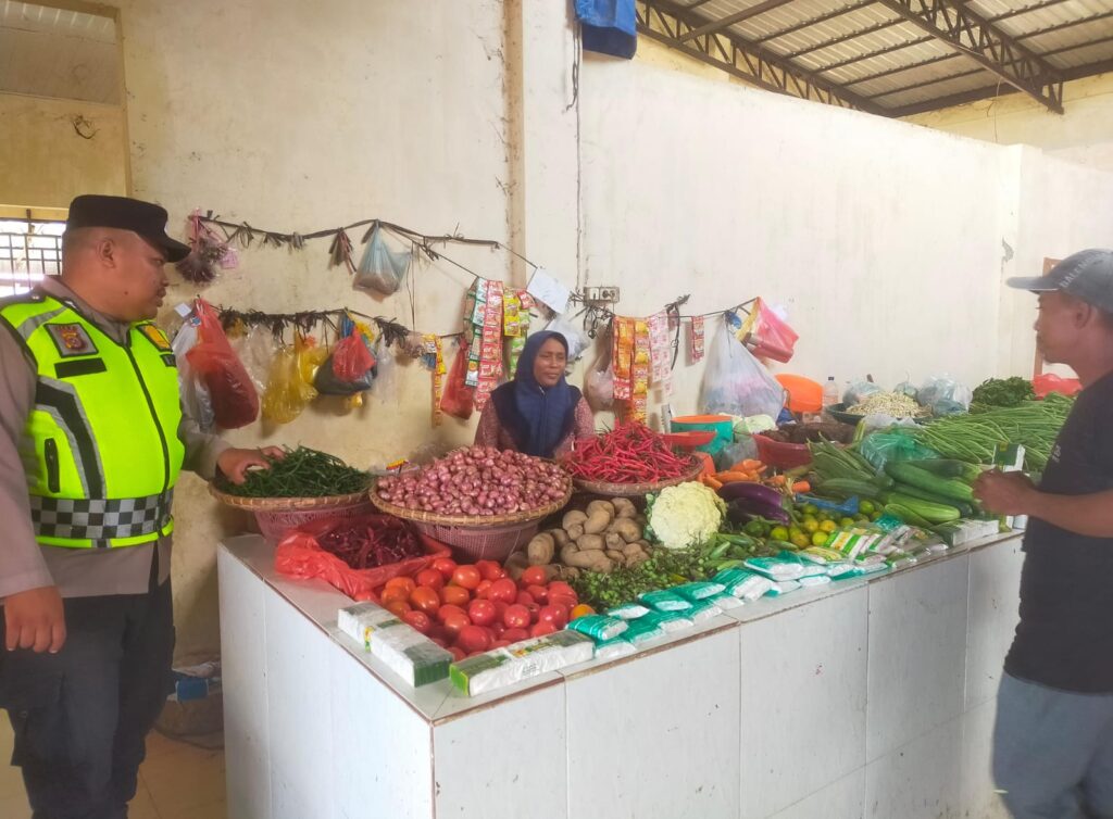 LHOKSEUMAWE – Personel Polsek Blang Mangat sambangi pedagang pasar Keude Punteut, Kecamatan Blang Mangat, Kota Lhokseumawe, senin (15/1/2024).