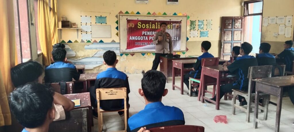 LHOKSEUMAWE – Personel Polsek Blang Mangat melaksanakan kegiatan sosialiasi penerimaan Polri Tahun 2023 kepada siswa SMK Negeri 5 Blang Mangat, Kota Lhokseumawe, Sabtu (25/11/2023).