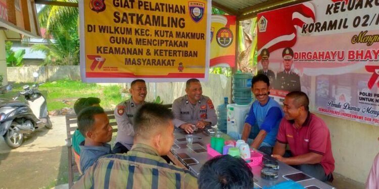 LHOKSEUMAWE – Personel Polsek Kuta Makmur memberikan pelatihan tentang Satuan keamanan lingkungan (Satkamling) kepada masyarakat, kegiatan ini berlangsung di Mako Polsek Kuta Makmur, Polres Lhokseumawe, Selasa (25/7/2023).