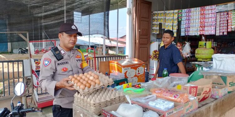 LHOKSEUMAWE – Personel Polsek Meurah Mulia melaksanakan patroli dan memantau stok beras di pasar Keude Jungka Gajah, Kecamatan Meurah Mulia, Aceh Utara, wilayah hukum Polres Lhokseumawe, Sabtu (9/12/2023).