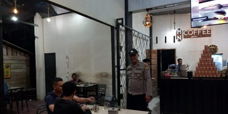 LHOKSEUMAWE – Personel Polsek Meurah Mulia melakukan patroli dialogis dengan menyasar warga yang sedang duduk di warung kopi (warkop) di Kecamatan Meurah Mulia, Aceh Utara, wilayah hukum Polres Lhokseumawe, Minggu (5/11/2023) malam.