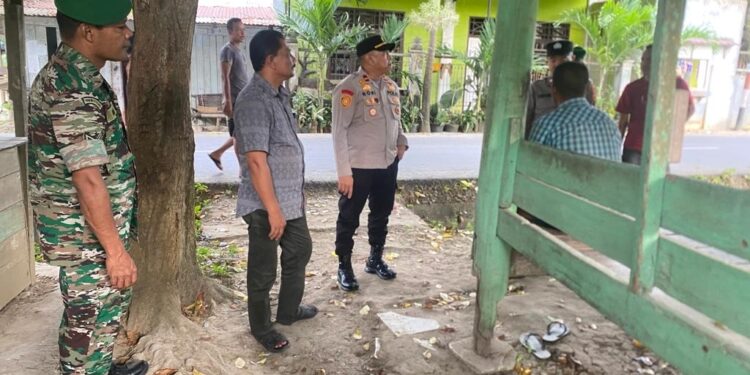LHOKSEUMAWE – Personel Polsek Muara Dua, Polres Lhokseumawe bersama anggota TNI Posramil Muara Dua mengecek Pos Kamling di sejumlah gampong (desa) di kawasan tersebut, Jumat (5/5/2023).